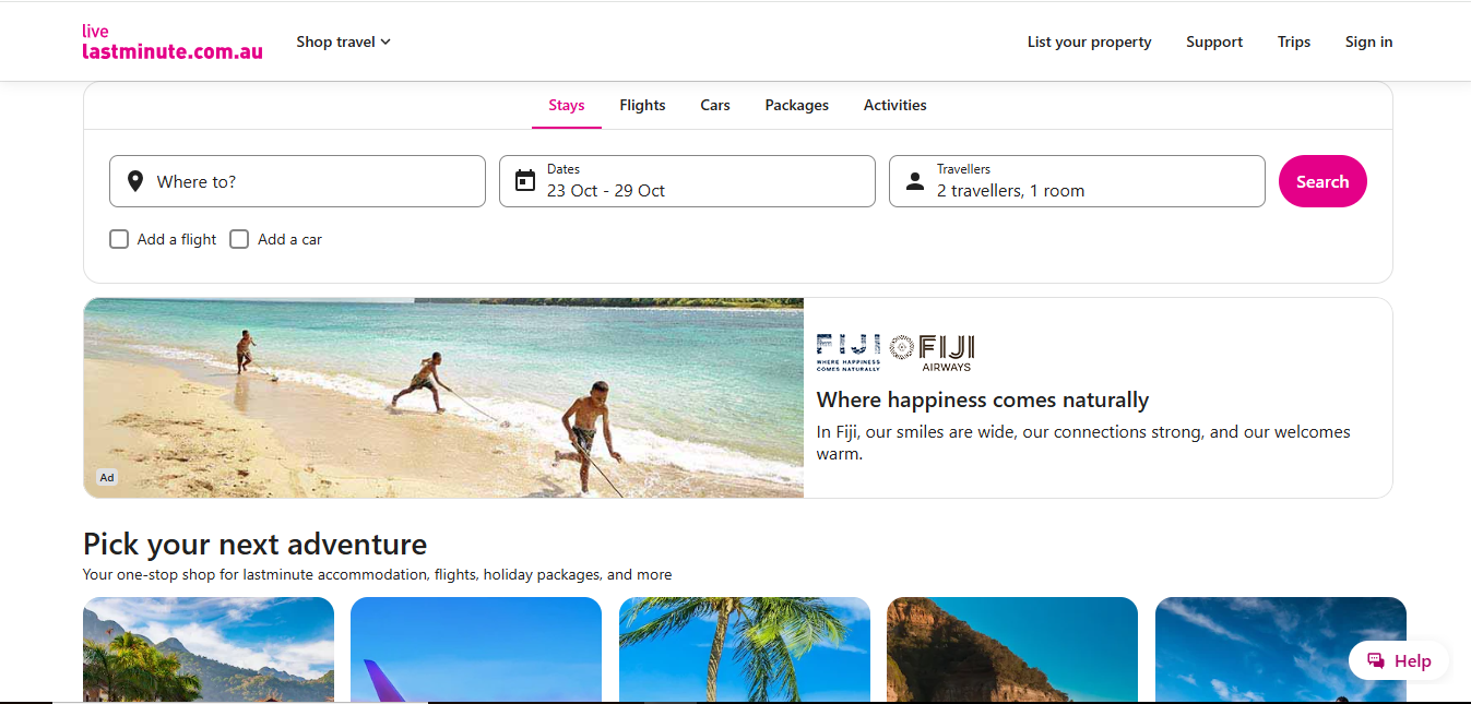 Lastminute.com.au is a popular Australian travel platform specializing in hotel bookings, flights, and vacation packages at competitive prices. Catering to the growing demand for flexibility, the platform is renowned for its last-minute deals, making it a top choice for spontaneous travelers. Whether it’s a quick weekend getaway or a last-minute business trip, Lastminute.com.au offers tailored solutions that combine affordability and convenience, ensuring a seamless booking experience for its users.