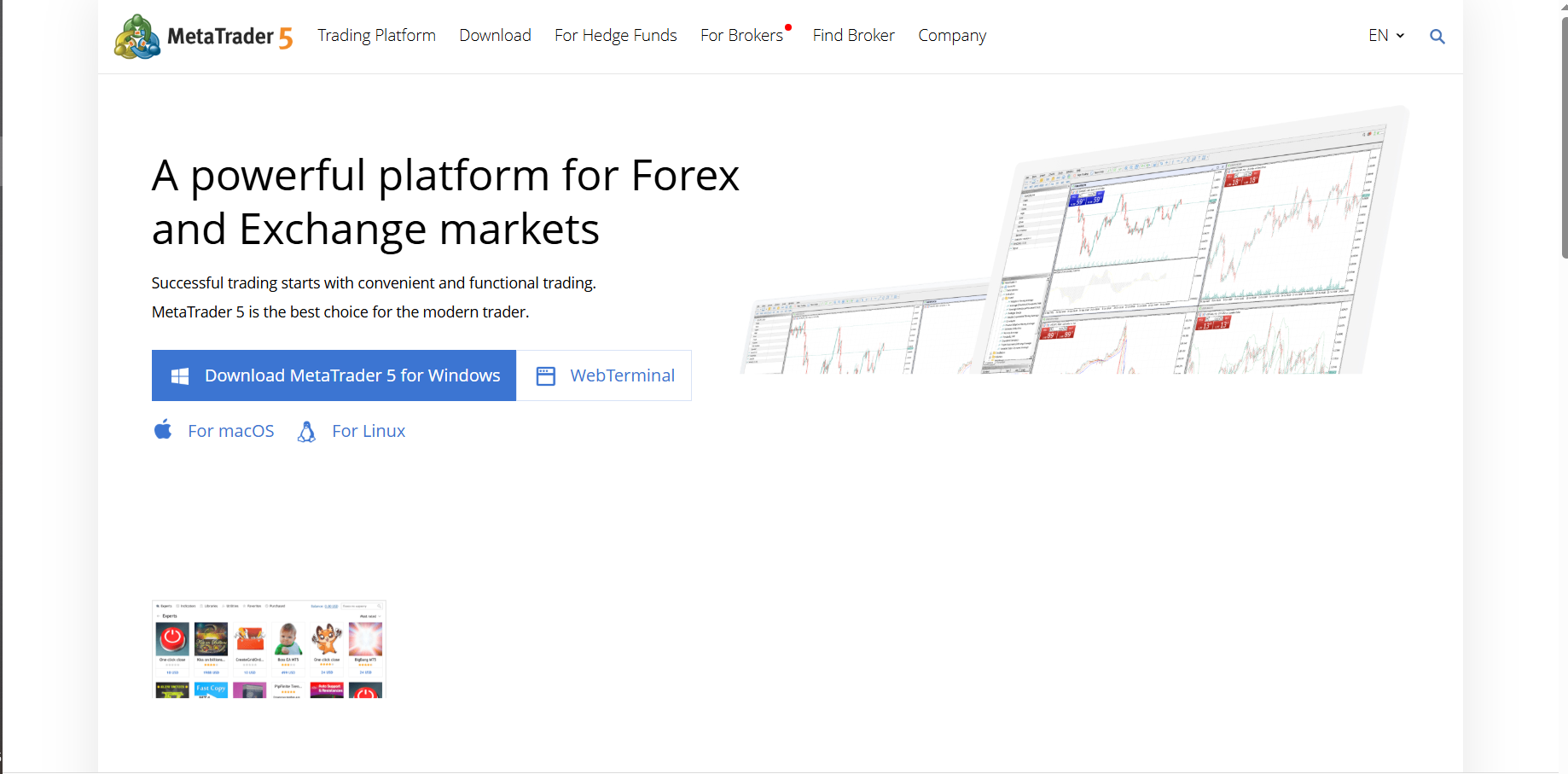 - Supports Expert Advisors (EAs) and custom indicators for automated trading