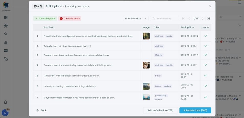 Bulk scheduling in Circleboom Twitter is designed for creators and brands who already know what they want to post and need an efficient, reliable way to publish at scale. It allows you to transform a long list of prepared content into a fully scheduled workflow, eliminating repetitive manual posting.