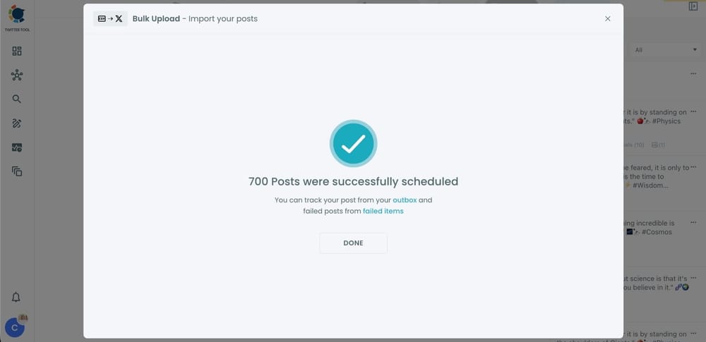 Once your CSV file is uploaded, Circleboom handles the rest—automating the scheduling process while giving you full control.