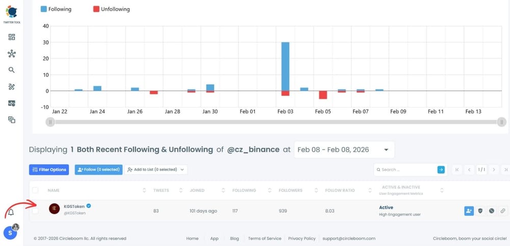 That’s where Circleboom x Creator Growth Labs Community becomes essential. Instead of static data, it reveals change over time, helping you understand not just who someone follows—but what that shift actually means.